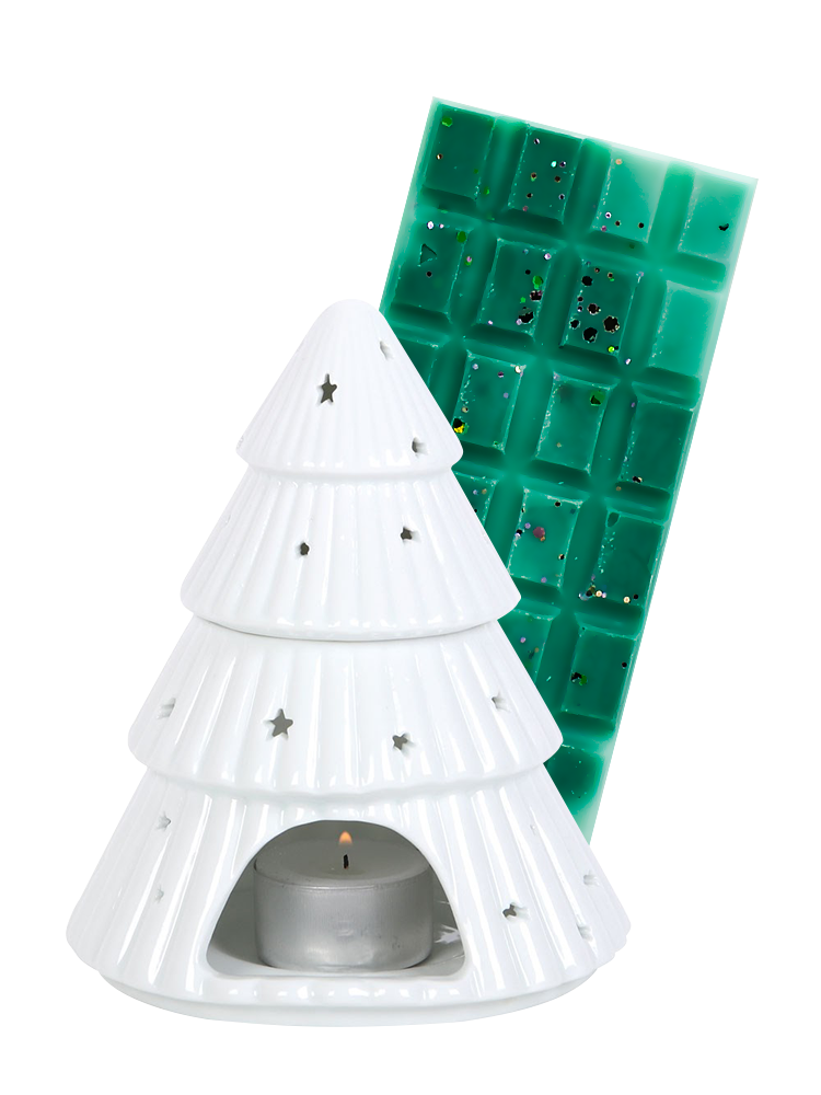 Κεραμικός αρωματιστής χώρου σε σχήμα χριστουγεννιάτικου δέντρου με διάτρητα αστεράκια & αποσπώμενο καπάκι.